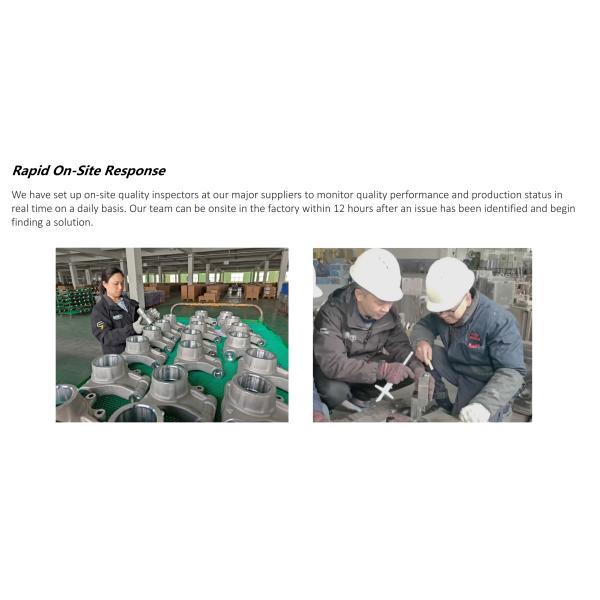 We have set up on-site quality inspectors at our major suppliers to monitor quality performance and production status in real time on a daily basis. Our team can be onsite in the factory within 12 hours after an issue has been identified and begin finding a solution.