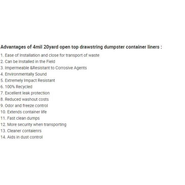 waste disposal. USE IT! Bottoms Up, save you TIME AND MONEY!Advantages of Dumpster Container Liners: