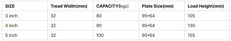| Wheel Diameter: | 3″ / 4″ / 5″ |